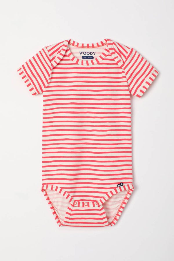 Baby body, koraal-witte streep
