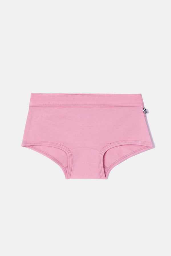 Set van twee shorty onderbroeken van stretch katoen. De één is effen roze, de ander is geel gestreept.